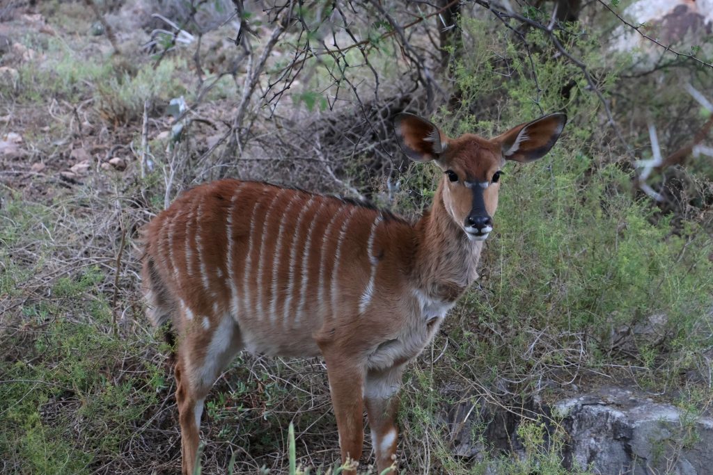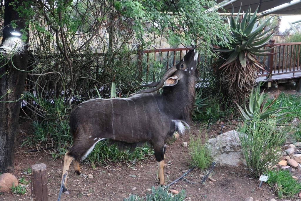Wir waren heute etwas früher zu Hause, weil wir um 19 Uhr eine Tischreservierung in der Buffelsdrift Lodge hatten. Oder auch nicht hatten, wie wir festgestellt haben, denn die Reservierung hat aus irgendeinem Grund nicht funktioniert. Einen Tisch haben wir trotzdem bekommen. Für mich gab’s wieder ein Straußensteak 🙂 Das Restaurant ist Teil eines Reservats und so laufen dort überall Tiere herum. Man kann natürlich auch Safaris machen. Auf jeden Fall ein super Spot, um gut in einem tollen Ambiente zu essen. Flusspferde haben wir leider nicht an Land gesehen, nur hin und wieder hat ein Kopf aus dem Wasser geschaut.