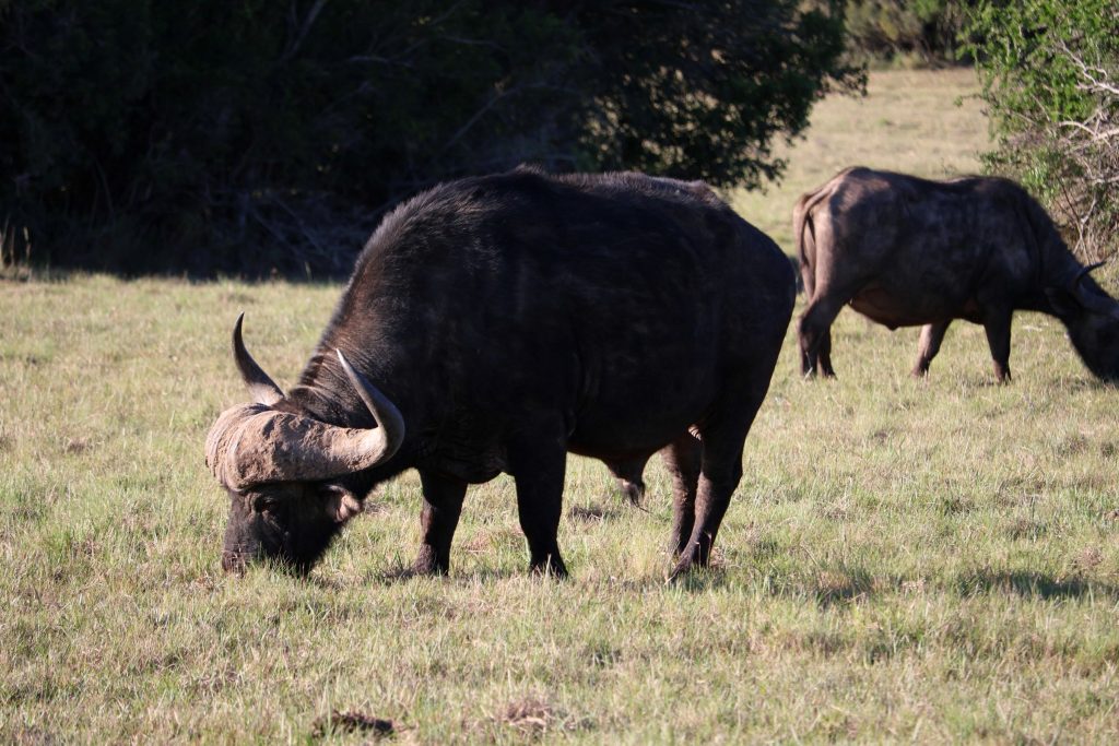 Bereits nach ein paar Stunden haben wir 4 der Big 5 gesehen. Löwe (direkt neben dem Jeep), Nashorn, Büffel und Elefant. Leoparden gibt es hier keine. Wir übernachten direkt im Park in der Warzenschwein (Warthog) Lodge. Von 15-19 Uhr war die Safari, inklusive kurzer Kaffee Pause. Um 19 Uhr dann gemütliches beisammen sein und ein Abendessen in wunderschöner Atmosphäre. Mehr oder weniger direkt neben dem Esstisch hat sich auch ein Löwe zu uns gesellt – er hat sogar mehrmals gebrüllt. Anschließend gabs noch eine Nachtpirschfahrt. Und on top, noch eine private Ausfahrt mit unserem Ranger Edward nur für uns 2, wo wir noch ein Flusspferd herumlaufen gesehen haben und nochmals einen Löwen.