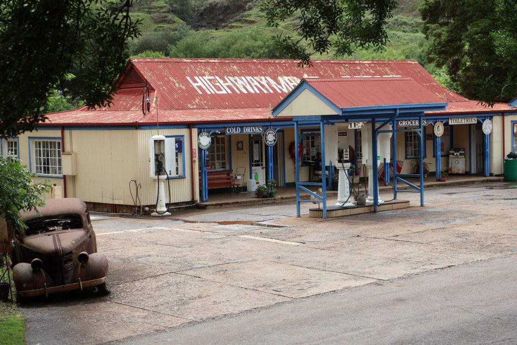 Der 1. Stopp war das ehemalige Goldgräberdorf Pilgrims Rest. Heute ist es mehr oder weniger ein Museumsort mit Shops, Restaurants und kleinen Hotels. Am meisten angetan hat es mir die super coole Tankstelle. 🙂