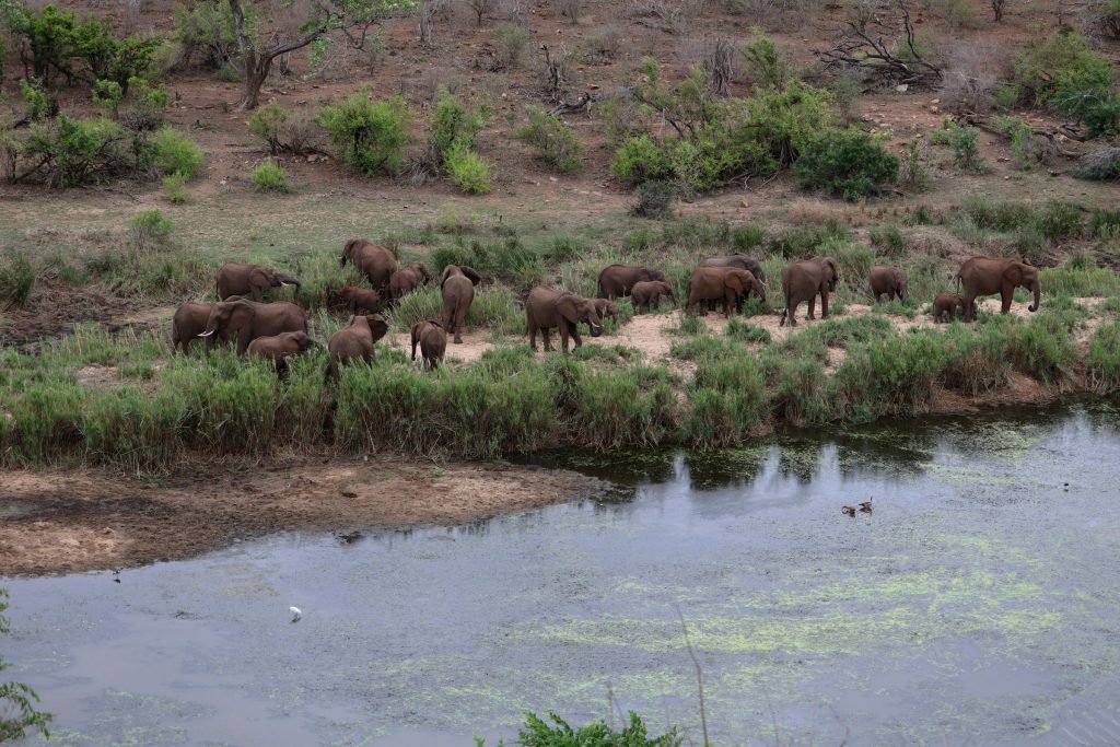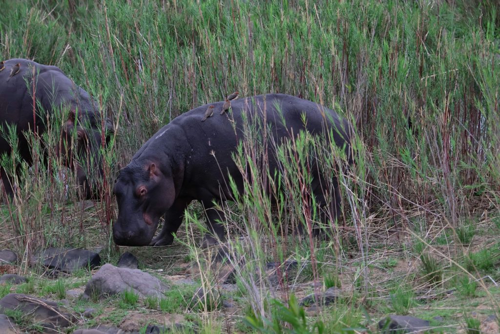 Wir haben zuvor ein wenig recherchiert, welche Route empfehlenswert ist. Vom Satara Camp bis zum Lower Sabie Camp. Zuerst die H1-2 nehmen und dann weiter auf die H1-4 bis zum Camp. 2 1/2 Stunden dauert die Fahrt bis dorthin. Inklusive Tierbeobachtungen natürlich. Gleich beim ersten Teil der Strecke haben wir 4 Löwen gesehen. Die Route hat sich also ausgezahlt. Im Lower Sabie Camp haben wir mit Blick auf Büffel und Flusspferde gefrühstückt.