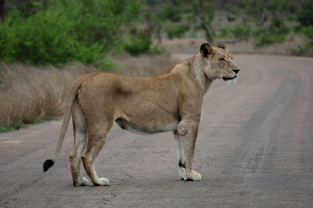 Danach ging es immer weiter nördlich, bis wir Schluss endlich im Satara Rest Camp für unsere letzte Nacht im Park angekommen sind. Der heutige Tag war der absolute Wahnsinn was Tiere betrifft. Schwierig, alles aufzuzählen, aber ein Highlight war, als 2 Löwinnen eine halbe Stunde vor uns auf der Straße spaziert sind und nach Beute Ausschau gehalten haben und sogar einen Meter neben dem Auto vorbeigelaufen sind. Oder als wir uns urplötzlich mehr oder weniger mitten in einer Büffelherde befunden haben. Es waren so viele, dass wir sie nie und nimmer zählen hätten können. Sicher mehrere 100, wenn nicht sogar mehr als 1000 Büffel haben die Straße gequert. Da steht man dann schon mal eine Zeit lang und wartet auf die Weiterfahrt. Genug der Wörter, nun folgen Bilder.